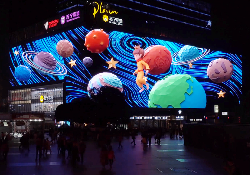 裸眼3D显示屏打破了传统2D平行显示的局限性,让用户不用戴眼镜就能体验3D立体影像效果。它具有强大的科技感,让观看者有一种沉浸感,仿佛整个人身临其境,同时互动效果好,完美实现人屏互动。这些都是传统LED显示屏产品无法比拟的。为商家提供了更加广阔、实用的应用场景。